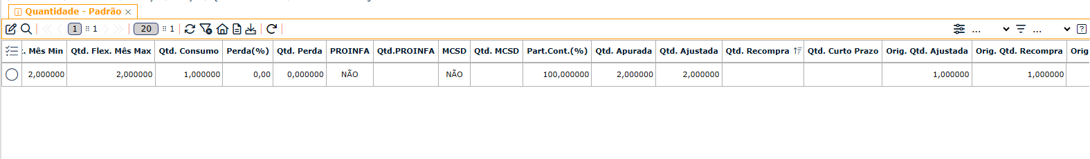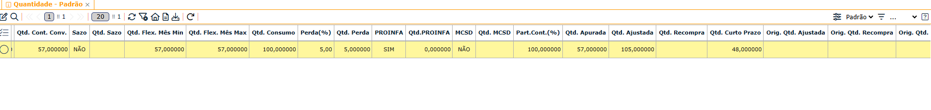 Se a repactuação for cancelada, o campo de curto prazo ficará em branco, e a Qtd. Ajustada será igual à Qtd. Apurada.