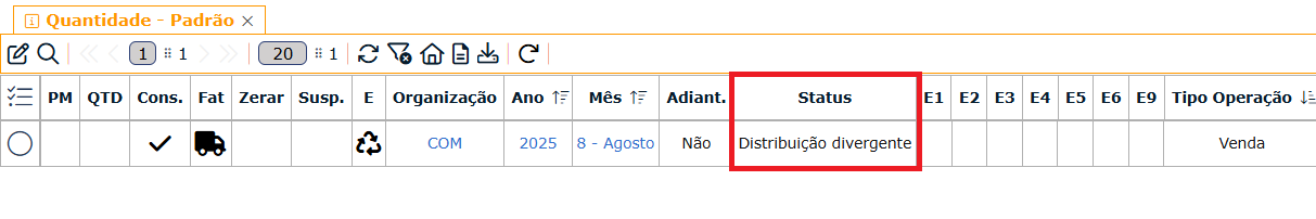 " novamente para que o status seja atualizado para "Distribuição Faturamento" e assim seguir com a consolidação.
